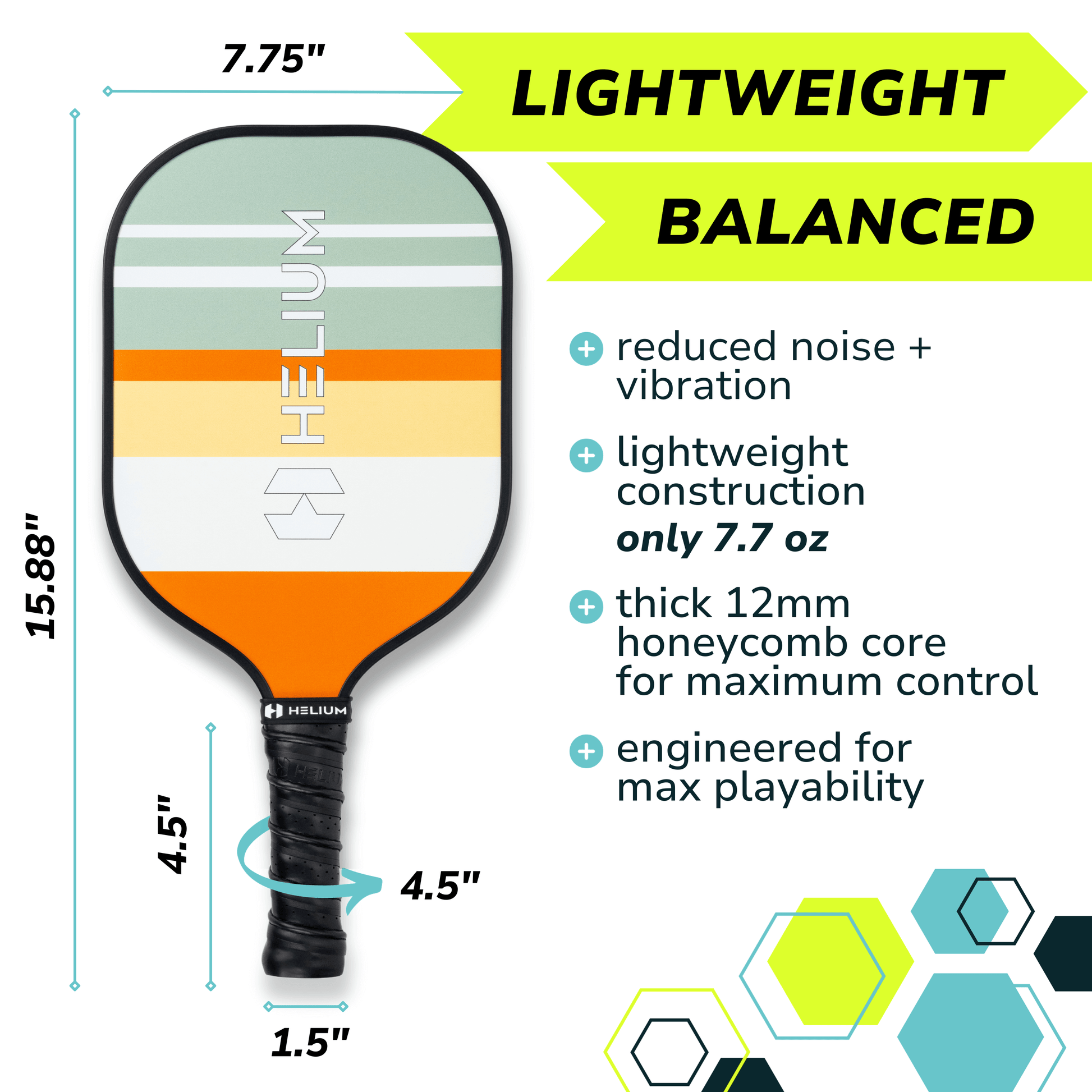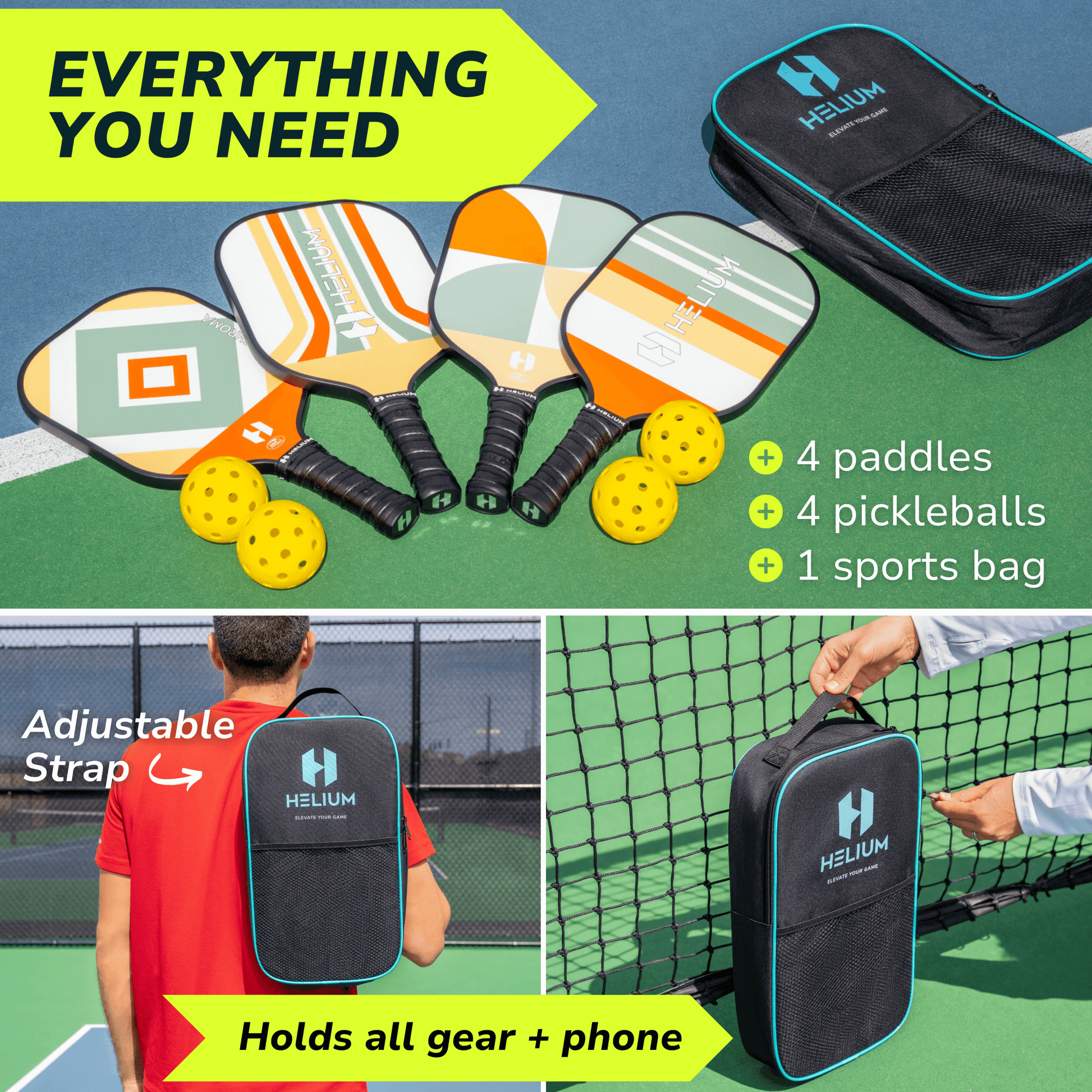 Our paddle set has 4 vibrant sporty colors so you can play with your favorite paddle. Get to your nearest court and Elevate Your Game with Helium!