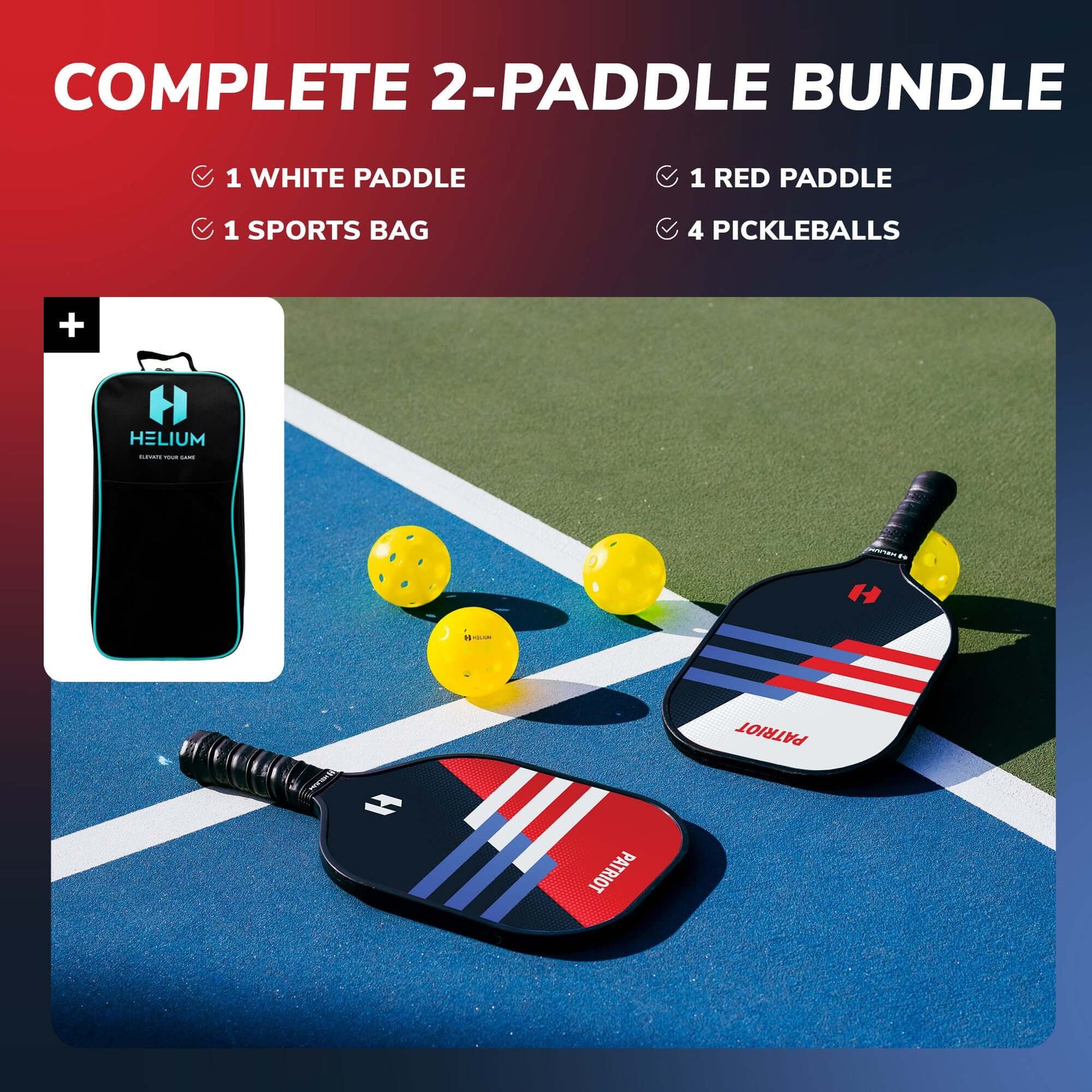 The Patriot 2 pack pickleball paddle set comes with everything you need to start playing Pickleball. Play singles with your friends and family and conveniently carry everything with you to the pickleball court in the included bag.