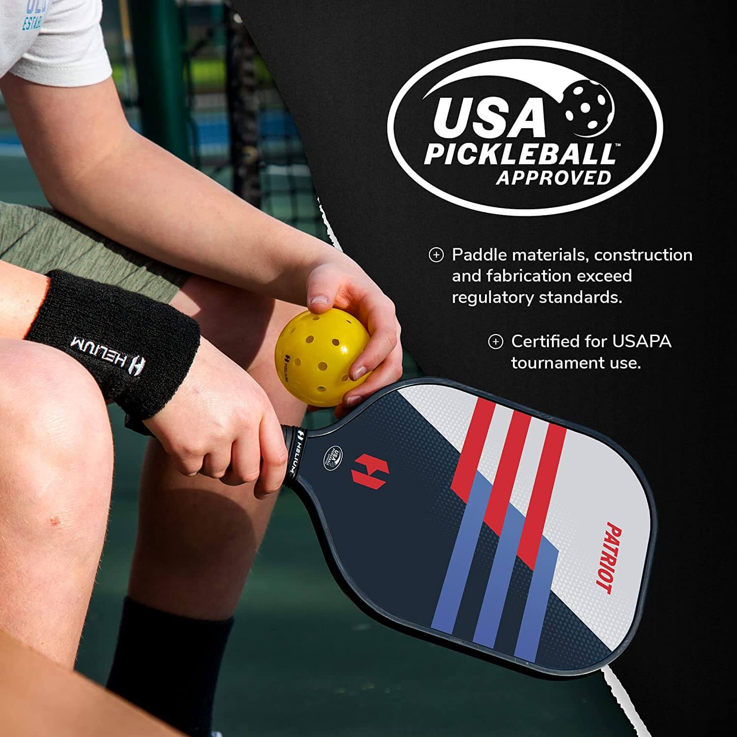 Each Patriot pickleball paddle is made with a fiberglass face which generates more control and power in each swing. The polypropylene honeycomb core makes the paddle light. Strike the optimal balance of power and control with the dynamic Patriot pickleball paddle.